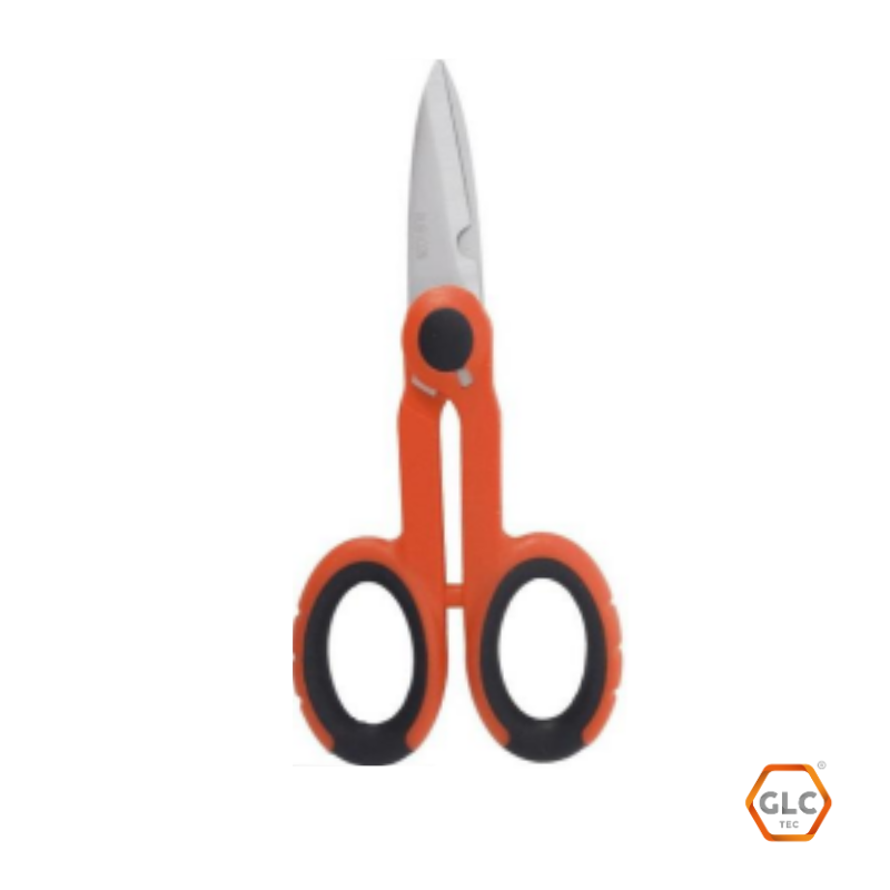 Tijeras ligeras ideales para cortar Kevlar elementos de resistencia encontrados en la construcción de cables de fibra óptica. Los mangos ergonómicos moldeados brindan comodidad tanto para usuarios diestros como zurdos. Una hoja microdentada reduce el deslizamiento para una acción de corte más positiva